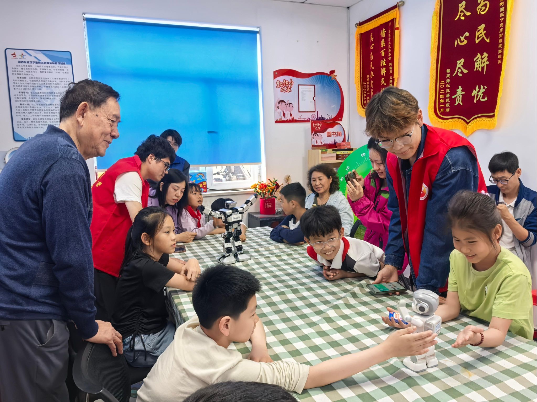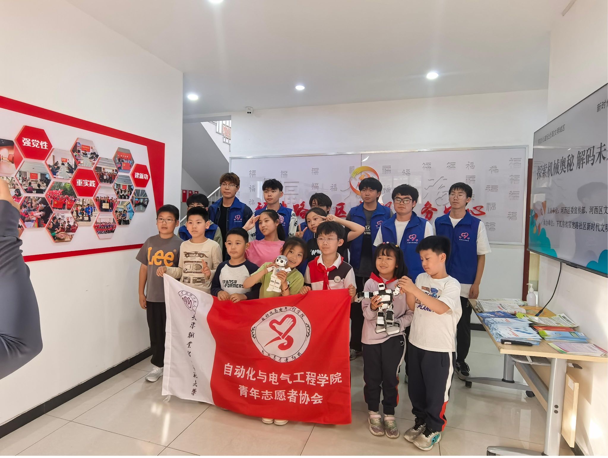 今日主动化取电气呼呼工程教院青年意愿者协会团结停瓦房街谈祸修道社区,配合启铺“新兴科技转变寰宇,探究呆板人的神秘”中央意愿效劳举动。