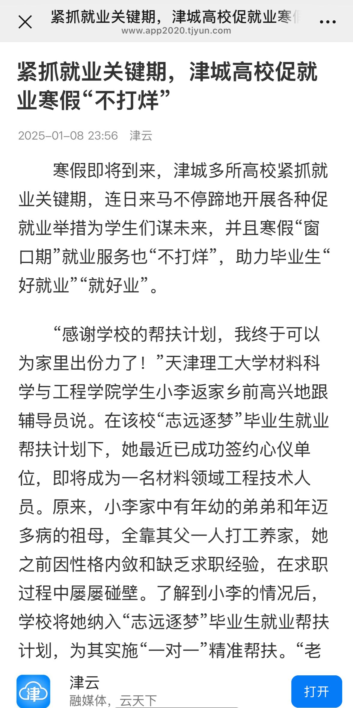 津云:紧抓就业关键期,津城高校促就业寒假“不打烊”